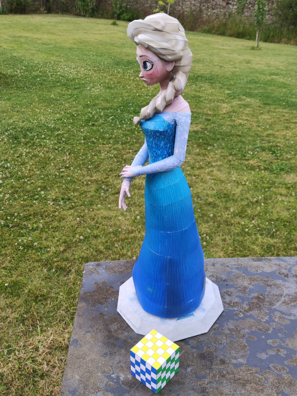 Vous avez bien compris il s'agit d'Elsa de la Reine des Neiges. Une maquette plutot sympa, avec quelques passages un peu casse-pieds (les mains en particulier, qui sont sensées tomber juste comme il faut l'une par rapport à l'autre...), le tout sur une base d'une vingtaine de cm de diamètre dont on ne profite absolument pas une fois fini (il y a marqué Disney Frozen dessus...ça ne se voie pas !)