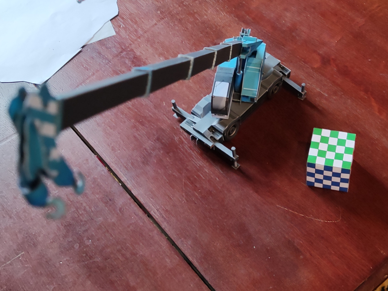 Pendant les vacances de Noel, j'ai terminé ma "maquette de voyage" que je trimballe depuis un an et demi en déplacement ! Voici donc une grue de chez canon, avec plein de pièces mobiles !