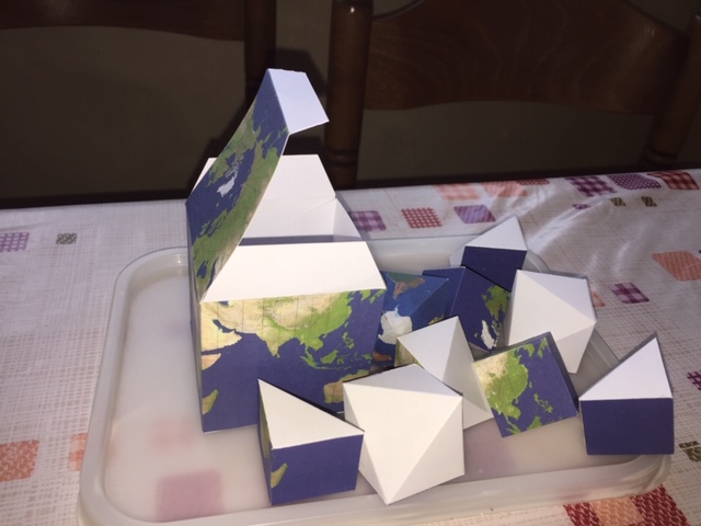 Si vous le souhaitez, les fichiers pdf ne sont pas protégés. J'ai laissé en arrière-plan les numéros de repérage du cube et de ses compléments. Ainsi, vous pouvez réaliser ce cube avec les images qui vous conviennent. Il suffit de découper les images en morceaux et de remplacer les morceaux de Terre par les morceaux de vos images.