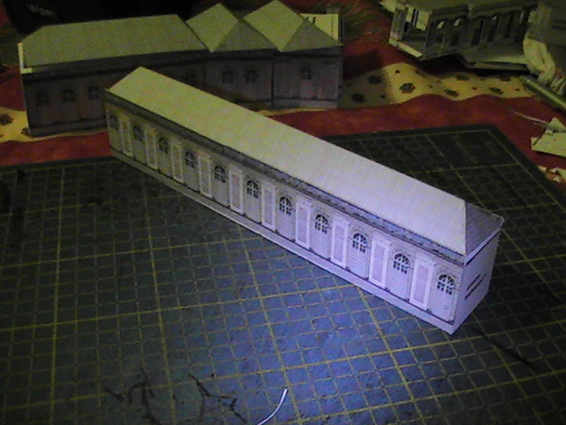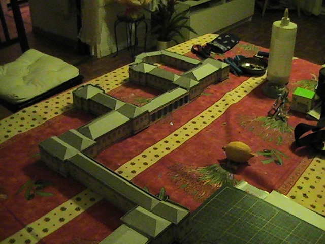 puis les batiment 18-19-20-21, qui ferment la cour à gauche de la cour d'honneur, et qui sont des communs et des logements des officiers et sous-officiers de la garde royale ; un des batiments ( le plus gros ) n'a pas été reproduit car construit beaucoup plus tard et ne figure pas sur le plan d'origine qui m'a servi de modèle ;
