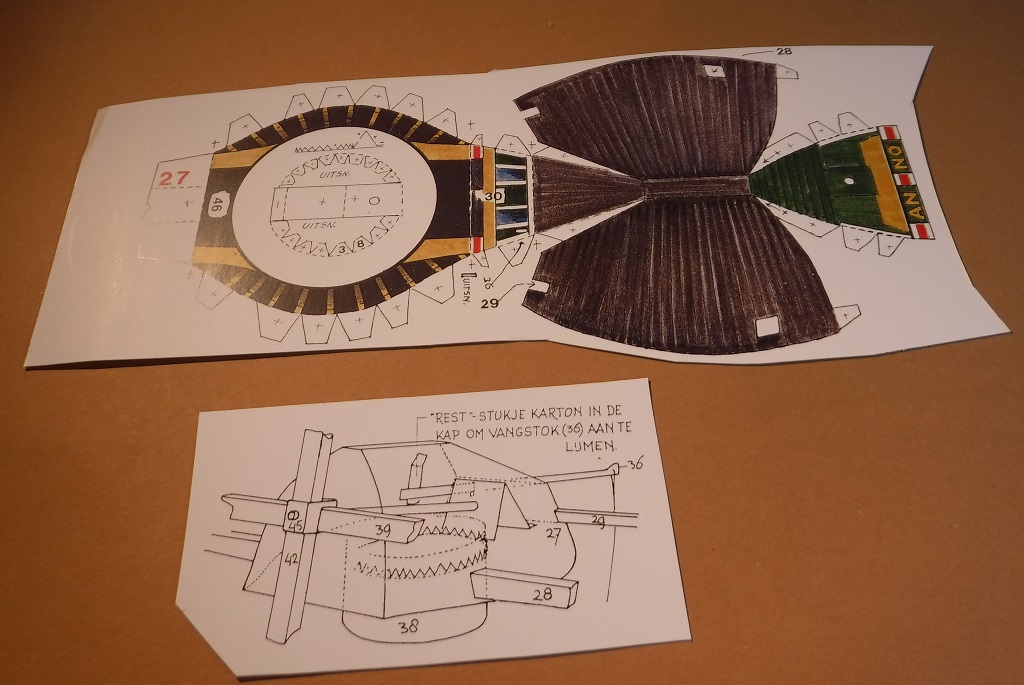 Un petit croquis de construction et un texte en néerlandais, anglais, français et allemand complètent la fiche de construction du modèle.