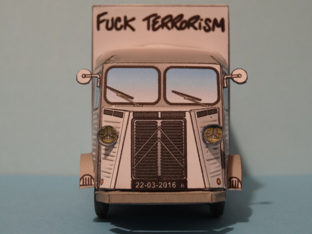 Il se veut simplement : "HOMMAGE AUX VICTIMES DE LA BARBARIE TOMBEES AUJOURD'HUI A BRUXELLES"