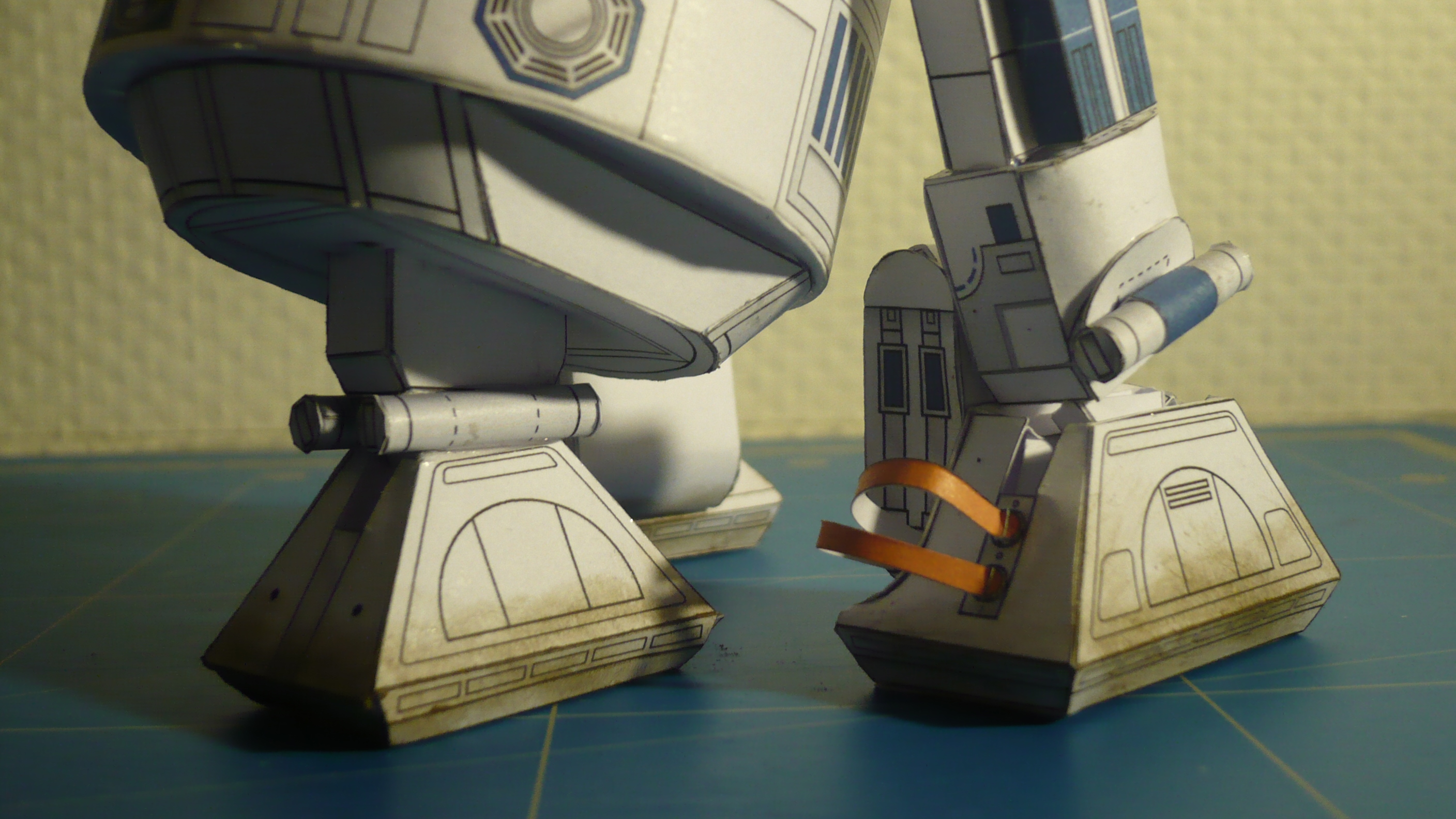 Les propulseurs fusées dans les jambes avaient été montrés dans la Main invisible dans l'épisode 3 où D2 met le feu (Allumez le feu !!) à du liquide inflammable prenant au piège des droïdes de combat . Vu son usage spatial dans le vide , les propulseurs fusées (Je parie qu'ils sont alimentés au plasma) sont utiles