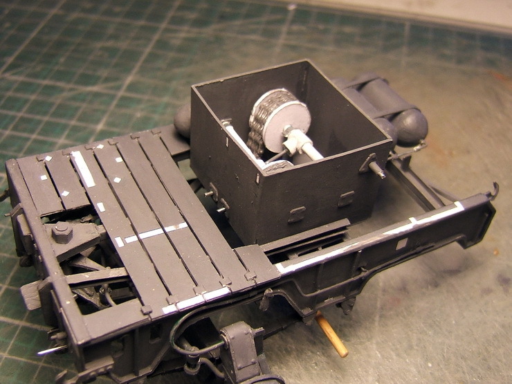 finitions avec mise en place des canalisations d'air conprimé. puis les cables de freins à main. et pour finir montage définitif du train avant A venir les roues que je suis obligé de monter pour pouvoir poursuivre l'amenagement des superstructures. Cela va prendre du temps et donc pas de post avant leur finition