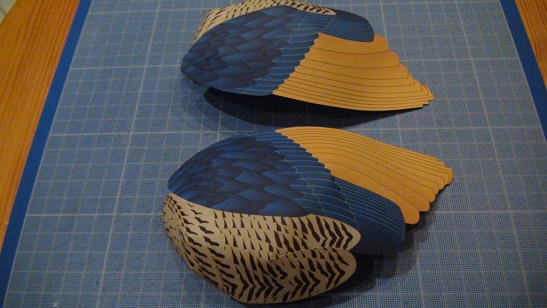 d'être de la tarte ! Je compte sur l'effet d'ensemble quand il sera terminé pour atténuer ces défauts (le gros plan ah non ça ne pardonne pas). Mise en place du bec, l'aigrette est prête. Après c'est le cou ... tout en courbures ...