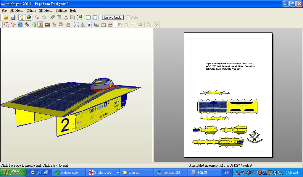 These are paper models made by myself of solar vehicles such as the ones seen in the World Solar Challenger.