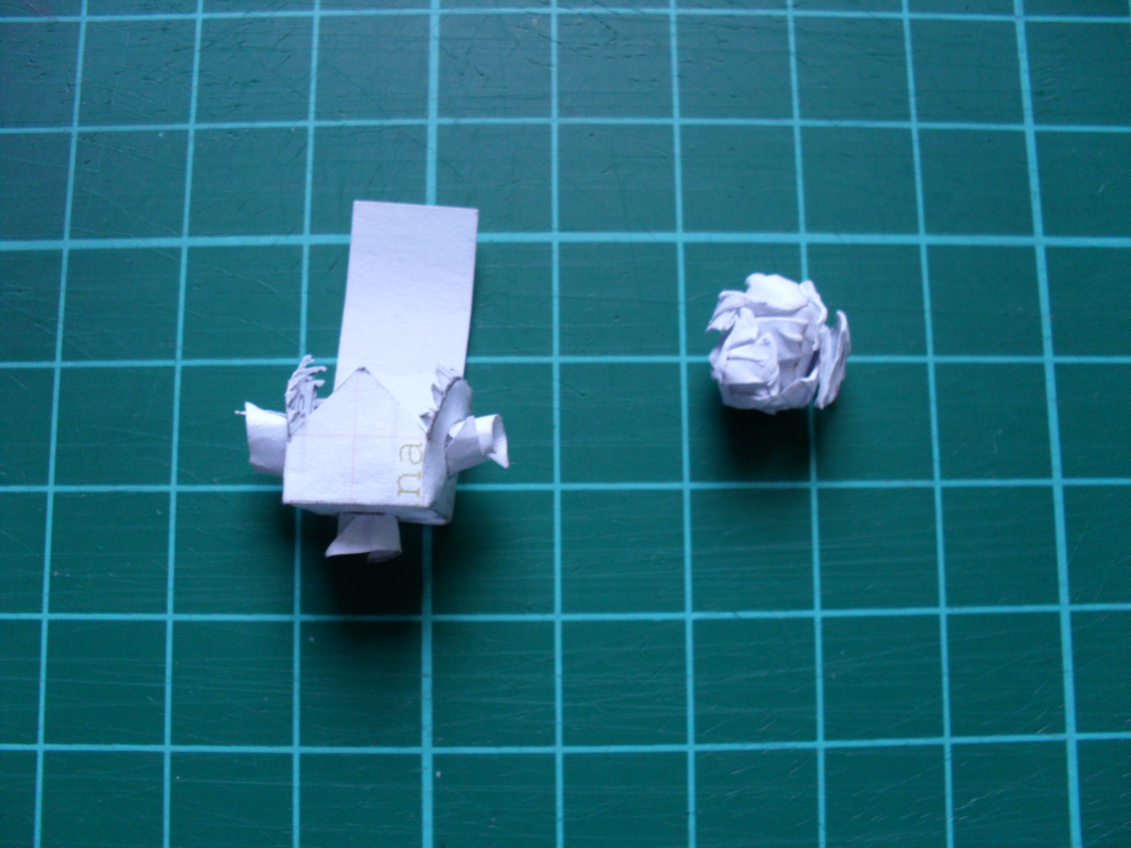 Les brasLa base de l'épauleCe qui va servir d'articulation et je renforce le tout avec une boulette de papier faite avec les chutes des chutes. Si ça c'est pas du recyclage. Enfin je ferme le tout. Pour la suite faudra attendre un petit moment car mon appareil photo n'a plus de pile et les course c'est pas avant samedi