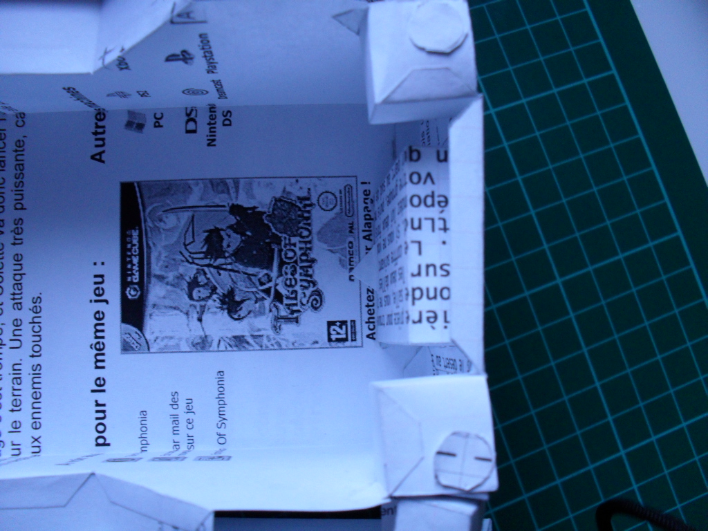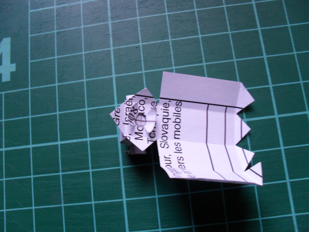 Je commence en vous montrant comment je fais les articulation. Je prend un carré de papier dont je marque bien le centre. Je trace un cercle qui fera le même diamètre que sur les pièces (8mm pour les grandes articulation 4mm pour les petites).Je coupe au niveau des diagonales sans dépasser le cercle. Et je replie 2 coté vers le haut que je courbe vers l'intérieur et je coupe les pointes des 2 cotés que je n'ai pas pliés. Je colle le tout sur un disque de papier inférieur en taille par rapport à la pièce qui vas êtres articuler (logique), et une fois sec je coupe les parti qui dépasse du disque. Ensuite je passe le tout à travers les trous des pièces à articuler,je déplie les 2 cotés que j'avais pliés au début et je répéter les étapes à partir du moment ou je coupe les pointes.Une fois le tout assembler je fais pivoté les articulations pour voir si elles fonctionnent bien. Là c'est la rotule de l'épaule et les deux pièces qui pourraient s'apparenter à l'omoplate.