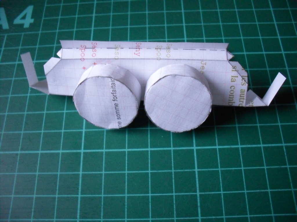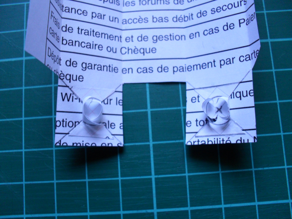 Woua! 3 post dans la même journée. Contrairement aux autres, là je colle directement les articulation sur la pièce.Et je les recouvres pour bien maintenir.Je ferme les pneus après les avoir bourré de chute de papier.Je colle les cotés et je bourre de papier.et je ferme le tout.