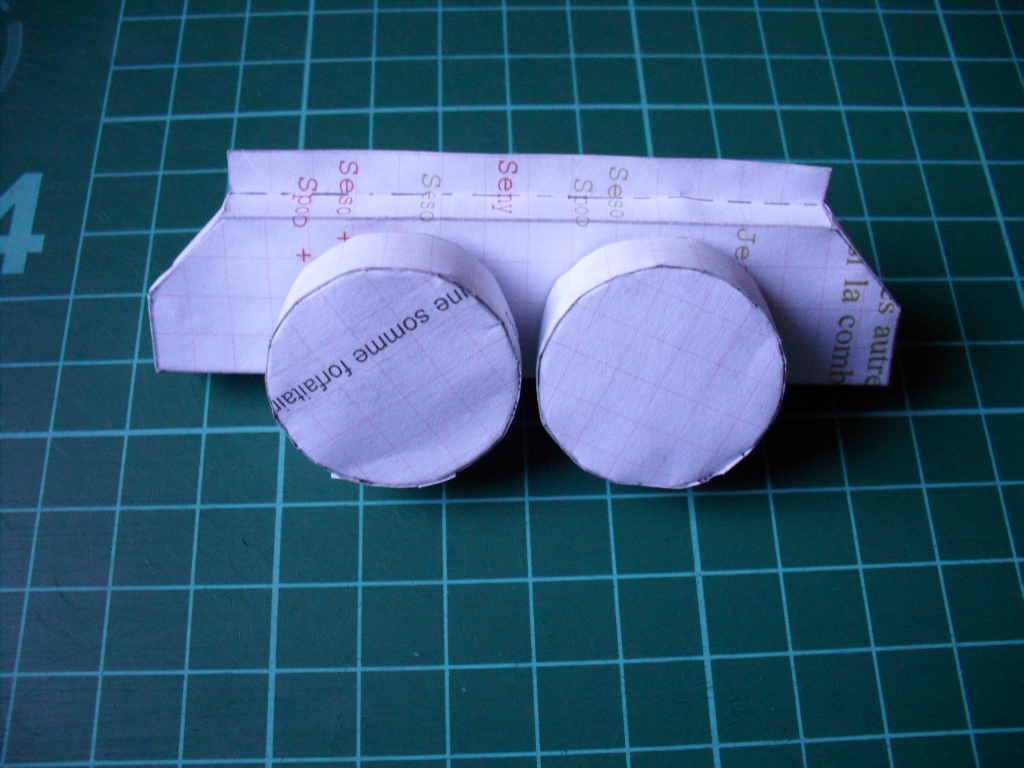 Je m'attaque aux réservoirs d'essence.Je rajoute l'articulation (Pour ce qui ce demande pourquoi je fais tant de photos? C'est parce que elle vont servir d'instruction de montage).Je fait l'arrière du camion.Et je rajoute les garde-boue qui serviront à maintenir la parti mobile des pneus.Et enfin l'arrière de l'arrière