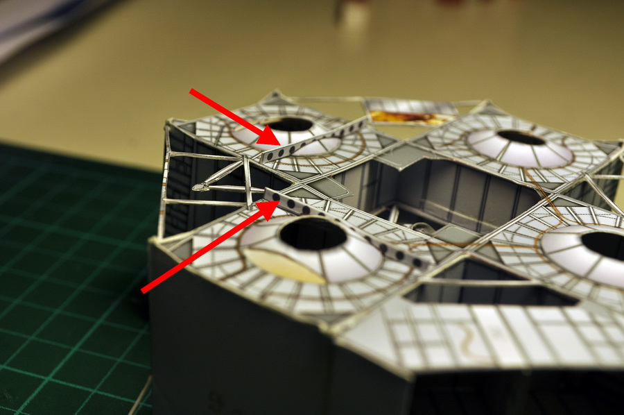 suite des habillages extérieurs avec les bras des trains d'alunissage