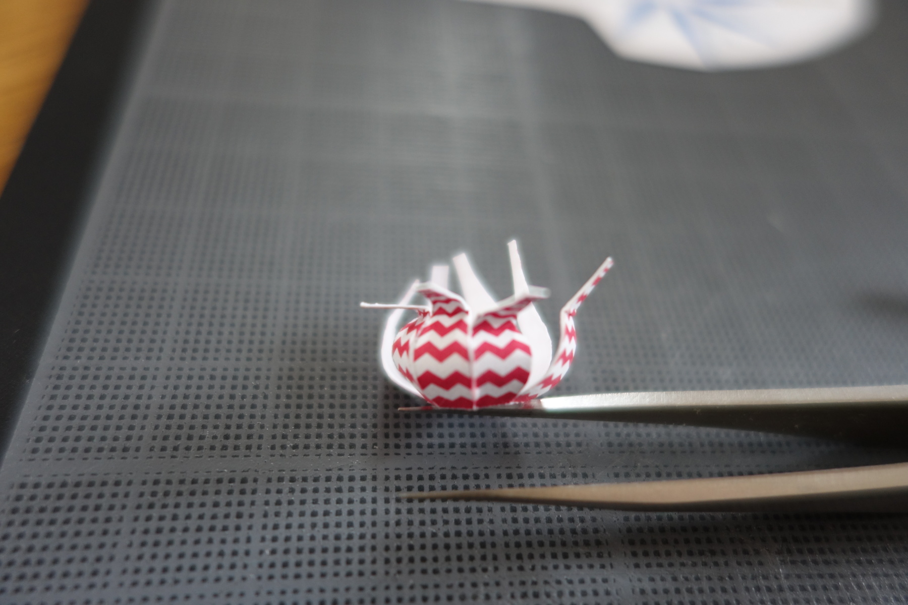 Outils : loupe, X-Acto lame 11, plioir, règle, feutres, pinces, etc.