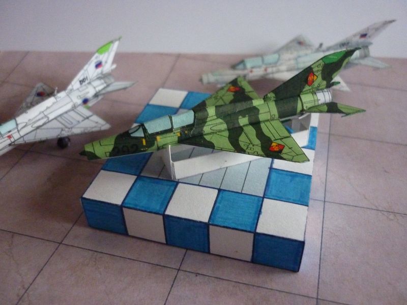 Le camouflage est improvisé (sauf à gauche) et les raccords sur l'arête dorsale doivent être revus. Cockpit, si tu avais des photos du MiG-21 biplace du musée de Montélimar... Les deux côtés et une vue de dessus ?