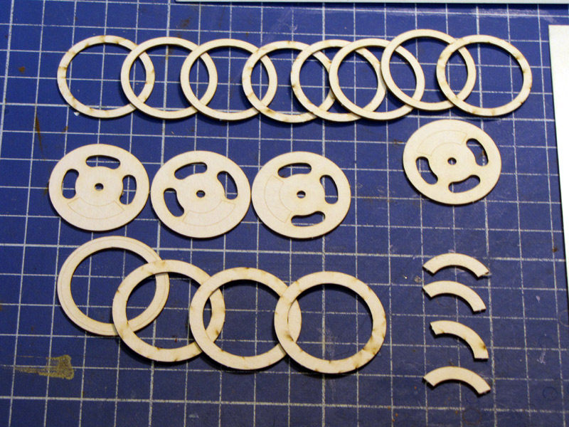 Suite avec les roues, carton découpé laser : et le l'habillage de ces roues: