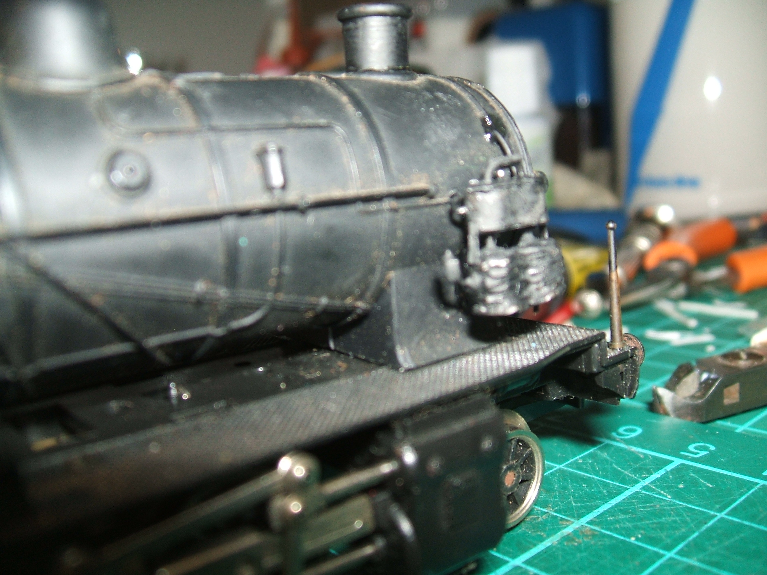 On voit sur la chaudière, en agrandissant l'image, les trous dans lesquels viendront les extrémités des fils de fer. Ce serait plus réaliste de tout refaire, mais ce n'est pas vraiment nécessaire.