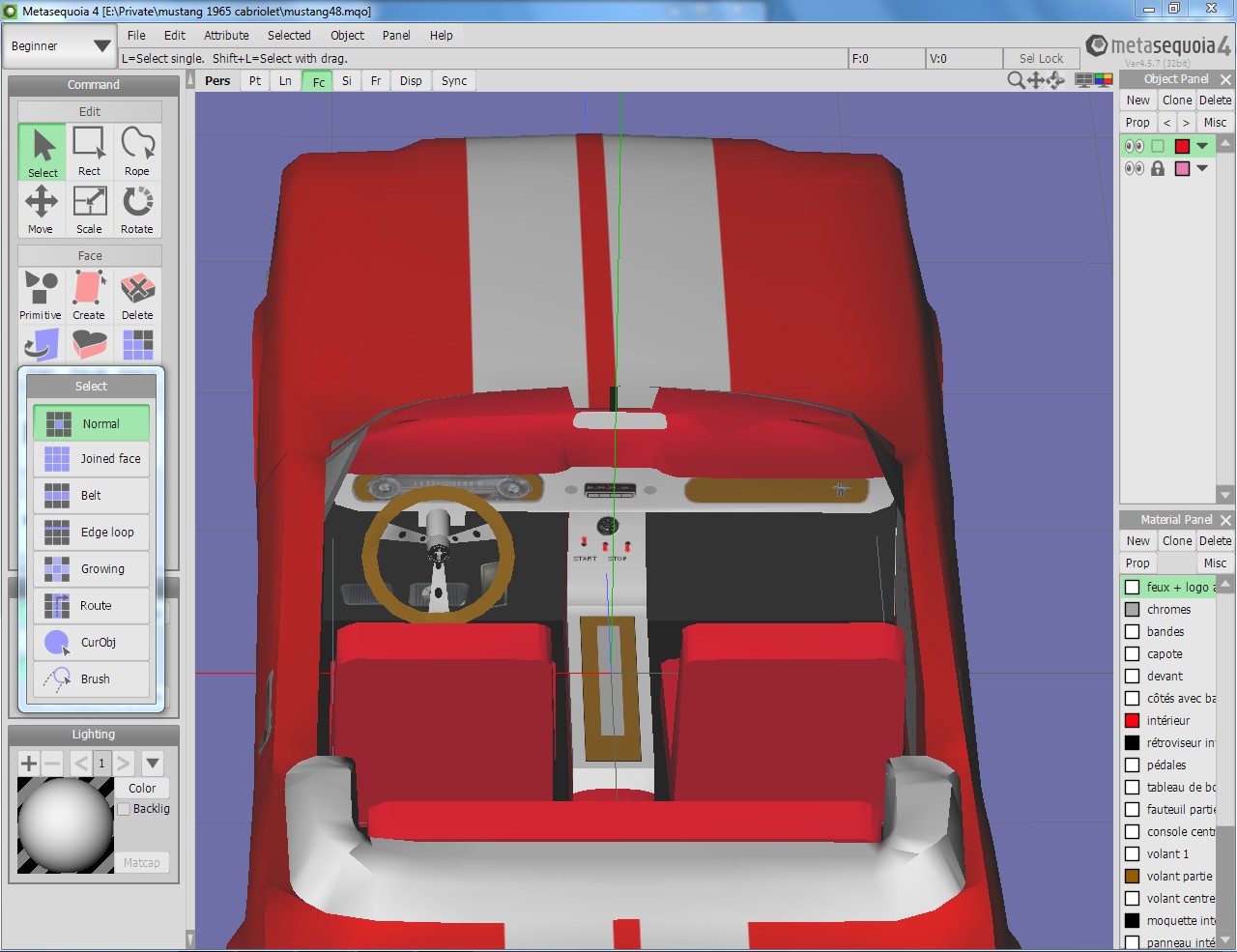 Avec la texture extérieur finie et l'intérieur en cour de finition :o : il reste le tableau de bord, le volant et les portes