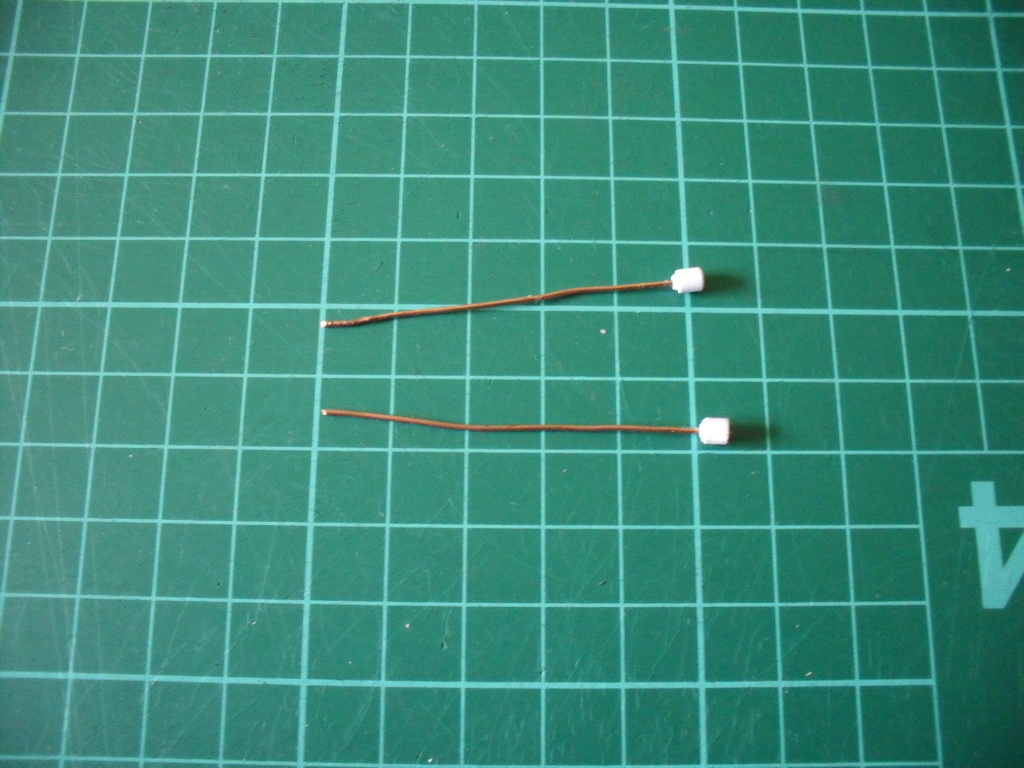 voici le train d'atterrissage, Il est articulé à l'aide d'un fil de cuivre auquel j'ai rajouté une bande de papier issue de chute que j'ai enroulé de chaque côté. le sommet de la tête. et enfin les "oreilles"