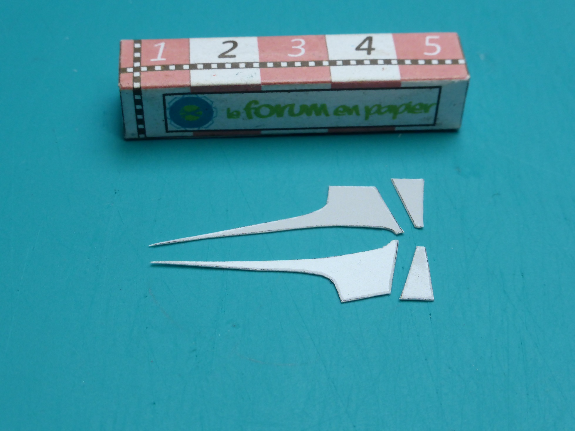 Je pense que tu as mis de coté les "oreilles de cochon"sur l'empennage horizontal. Le brillant du papier photo que tu utilises donnera sans doute un meilleur rendu au revetement alu de l'appareil.