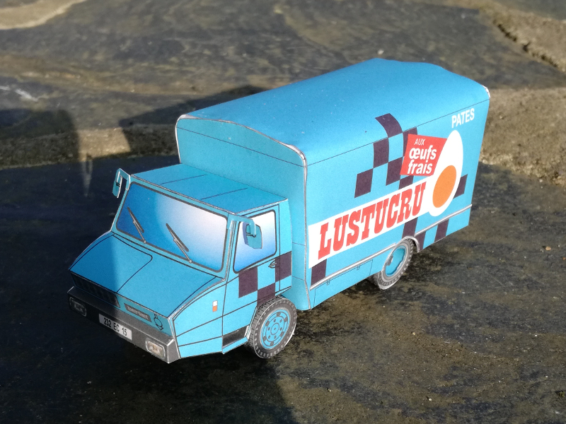 A priori j'ai fait le premier, je n'ai aucune mention d'échelle sur le fichier (sur les planches ou dans le titre "berliet stradair Lustucru version corrigée"). Je suis assez content de la cabine, mais j'ai un peu raté un truc sur la caisse, les alignements ne sont pas bons (ça se voit bien du coté droit, en bas)...
