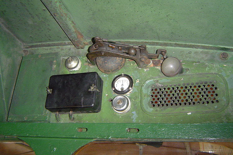 Au dessus de la tête du chauffeur, je ne sais pas si je l'ai dessiné; en tout cas, je l'ai faitIci, le plafond est vert!