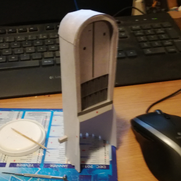 Donc noux voila à la fin. Il s'agissait d'une reproduction de la chapelle Notre Dame du Haut situé à Ronchamps, et dessiné par l'architecte Le Corbusier. Une maquette assez sympathique à faire, même si qqs petites erreurs de ma part au départ ont fait que les alignements finaux ne sont pas parfaits...