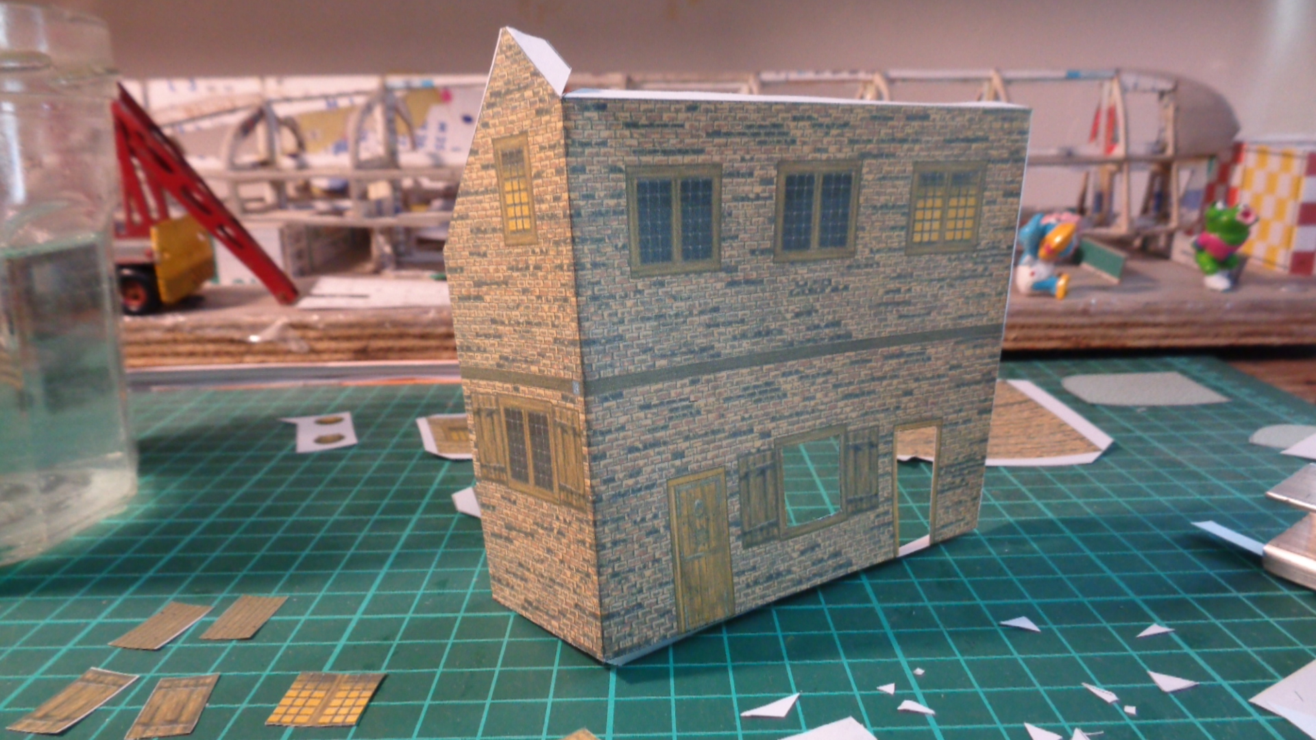 Un essai de montage en relief pour la version détaillée. J'ai trouvé ce système très laborieux au 1/66 ème mais bon pour le 1/43 ème. Je me suis donc contenté de faire une fenêtre et une porte comme ça, les autres restant simplement imprimées.