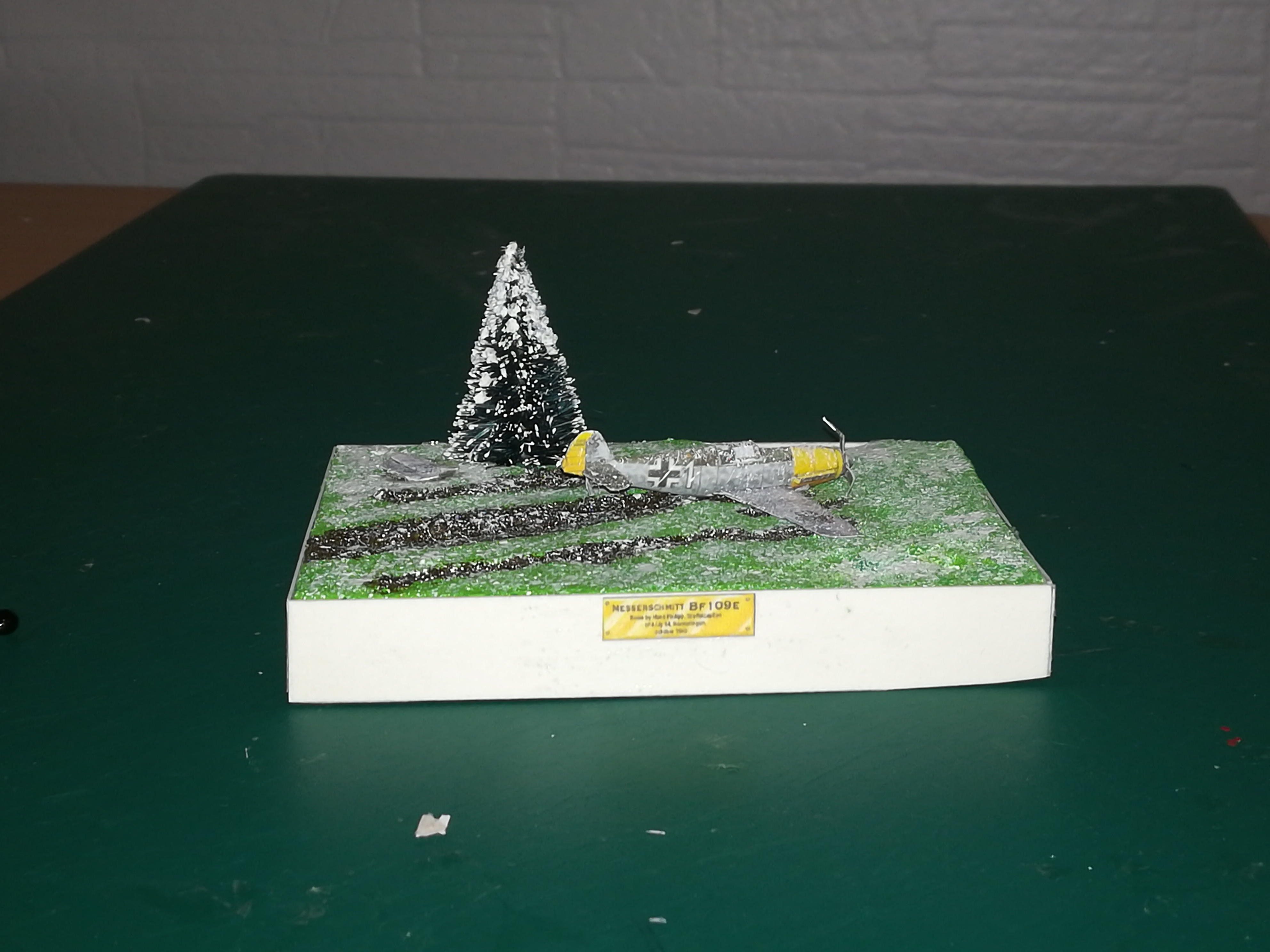 cela ne m'a pas pris beaucoup de temps mais avec le début des grèves, sa permet d'avancer un peu. Enfin bon bref, voici un me109e3 de chez prudenziati mit en scène dans un diorama de crash au moi de décembre