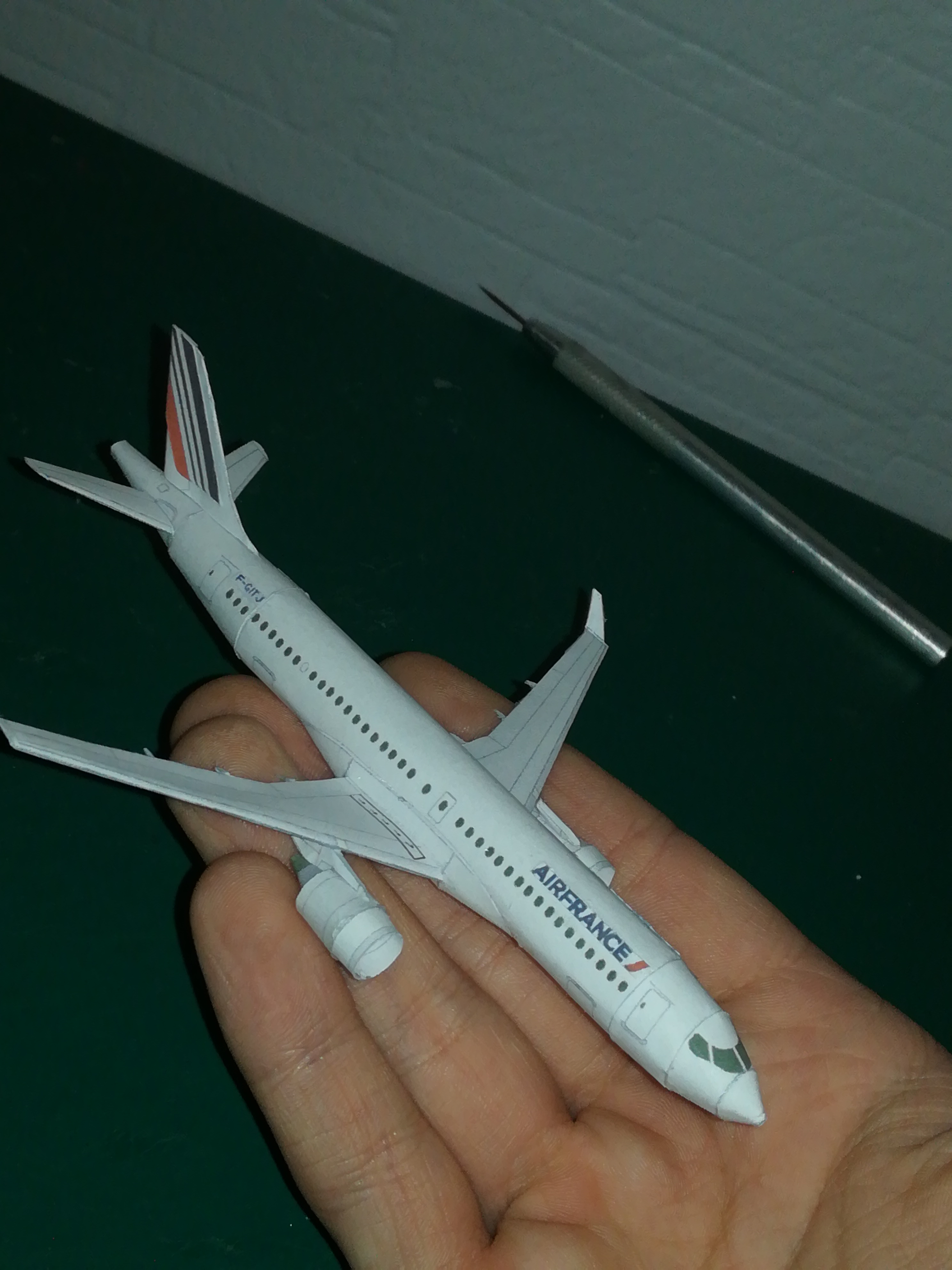 Un a220-300 de chez scissors and plane recolorié par cafecomics que je remercie. J'ai fais quelques modifications en rajoutant le logo air France, sa plaque et le drapeau sur l'aileron. Voici maintenant un magnifique a220-300 air France à échelle 1/300è.