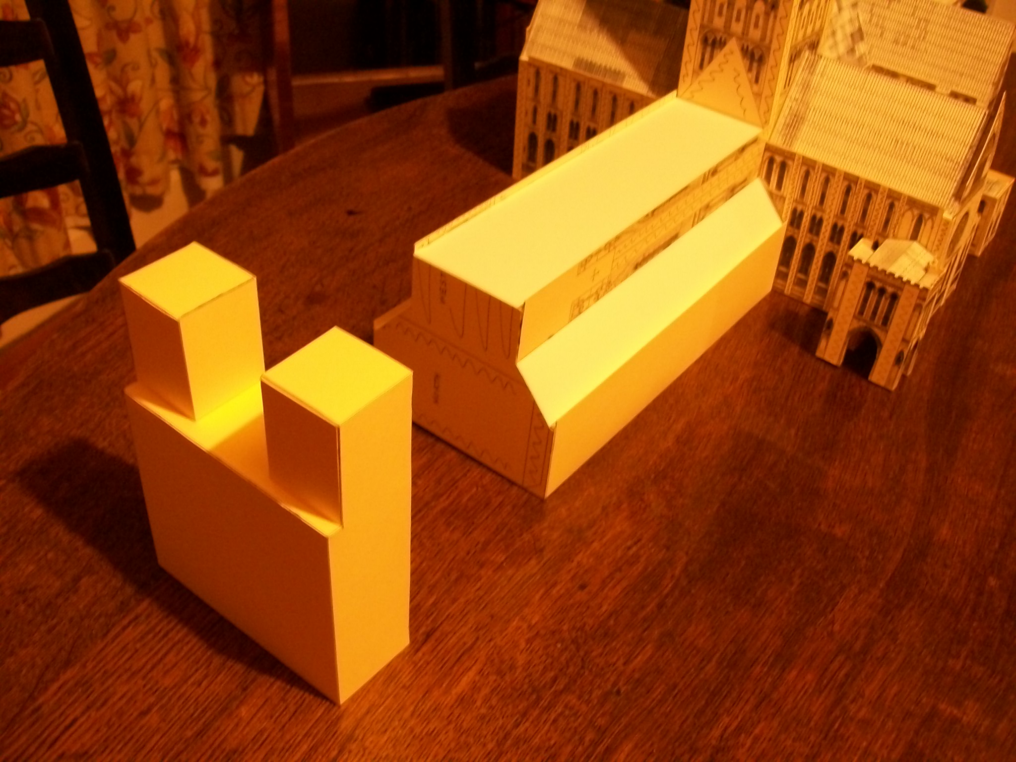 Enfin, le nef, les deux chapelles attachees au nef et le grand facade sont presque finis. Ici, vous voyez quelques desins pour ces elements de la cathedrale. Voyez aussi mon bureau qui est en fait le salle a manger chez moi. Demain, il y aura plus.