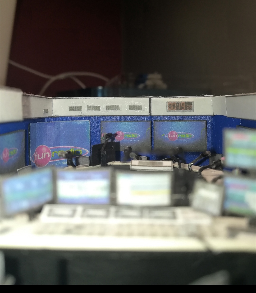 Bonjour à toutes et à tous, en période de confinement pour le coronavirus, j'ai le temps de continuer à faire des maquettes. En voici une qui m'a bien prit 3 semaines de création. Vous ne la trouverez pas sur internet ou dans un forum car elle n'existe pas. Obtenue avec comme seuls objets des photos, vidéos, lives mais aussi grâce à une personne qui travaille dedans. Voilà voici le studio 31 de fun radio !!! En espérant que cela vous plaira.