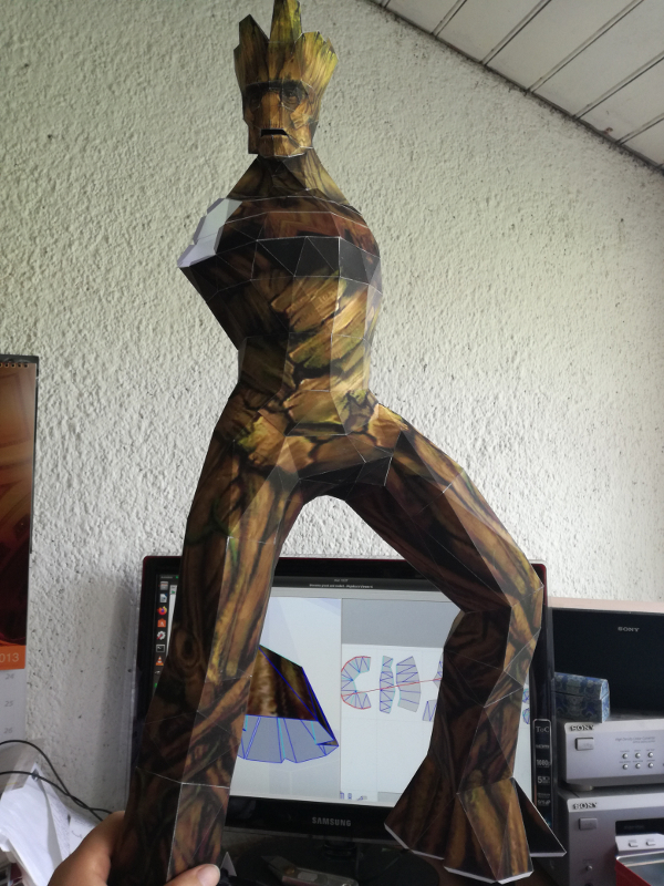 Au hasard de mes recherches sur le net, j'ai trouvé un papercraft de groot (+ bonus) qui m'a paru tout à fait sympathique. Il s'agit d'un grand modèle (annoncé à 70 cm de haut) comprenant 31 pages à imprimer, sur papier 160mg pour ma part.