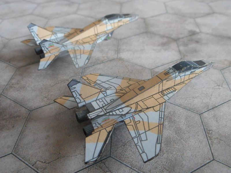 Et un irakien aussi. Deux version du même en fait vu que mes plans 3 vues étaient contradictoires. Le vert et le brun sont inversés sur le deuxème mais le numéro de série reste le même. Petite erreur de camo sur l'entrée d'air gauche.