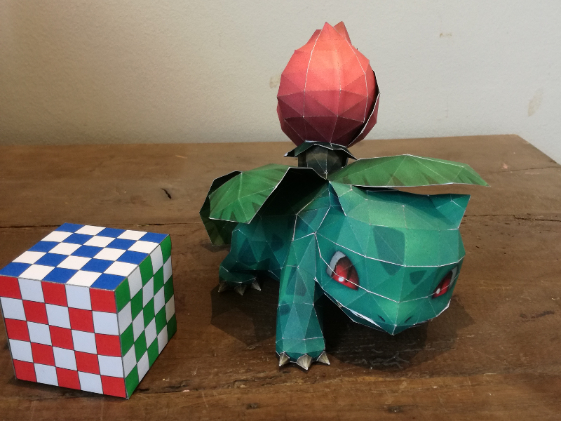 Un nouveau pokémon, l'herbizarre en français ou Ivysaur en anglais. Le bulbe était un peu casse pied à faire car l'intégralité des pièces est doublée, donc des pièces moins faciles à monter... Tout ça pour des pièces qu'on ne voit absolument pas !
