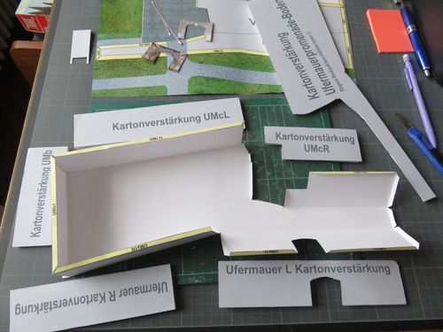 On commence par la terrasse et la promenade sur l'enceinte médiévale. Cette terrasse est renforcée par du carton plume pour rendre la maquette plus solide. à suivre...