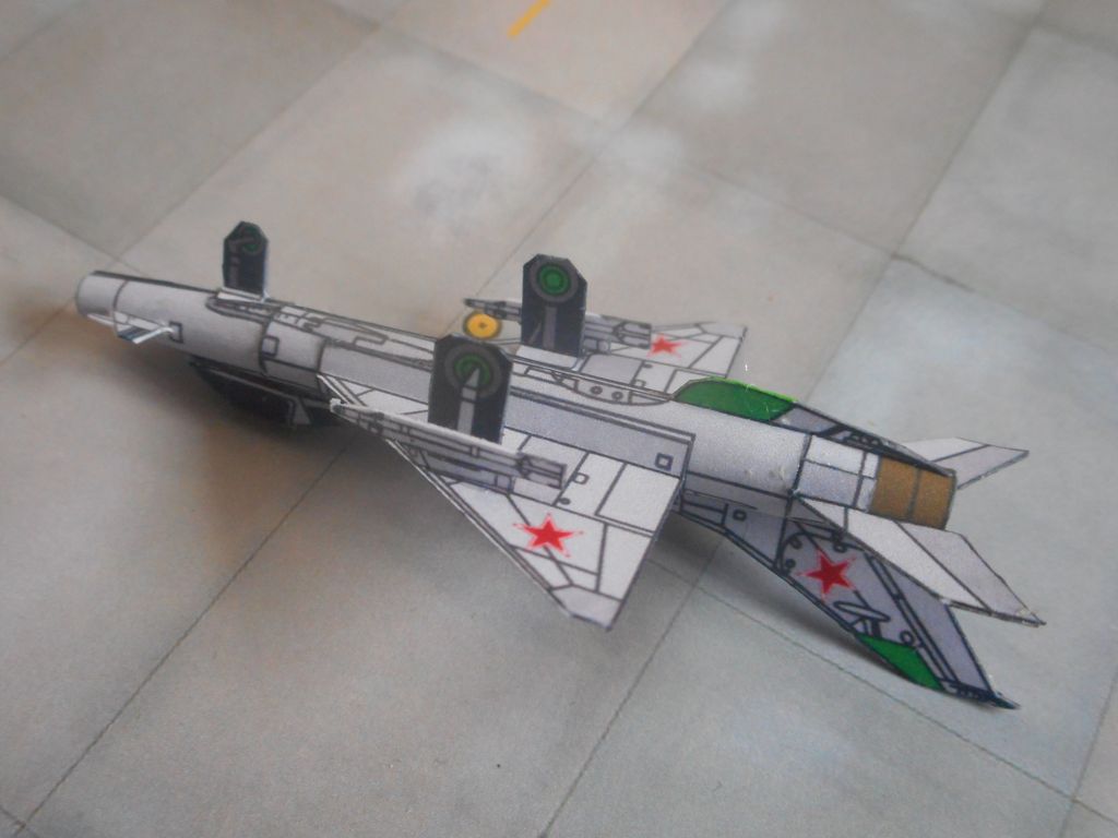 Mon imprimante a eu un peu de mal à sortir d'hibernation et, quand elle a enfin bien voulu fonctionner, a transformé le beau camo brun/sable du MiG-21Bis en bouillie verdâtre.