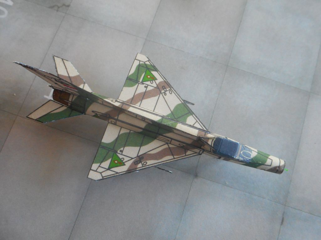Mon imprimante a eu un peu de mal à sortir d'hibernation et, quand elle a enfin bien voulu fonctionner, a transformé le beau camo brun/sable du MiG-21Bis en bouillie verdâtre.