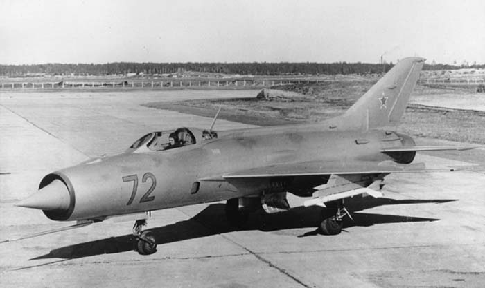 - début de carrière (dérive de Ye-7/1&2, verrière et épine dorsale proches de celles du MiG-21F-13, perche sous le nez.