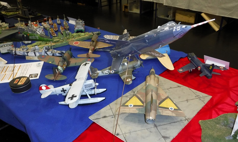 Le modélisme en papier était bien représenté, avec une grande variété de modèles à admirer sur six tables.