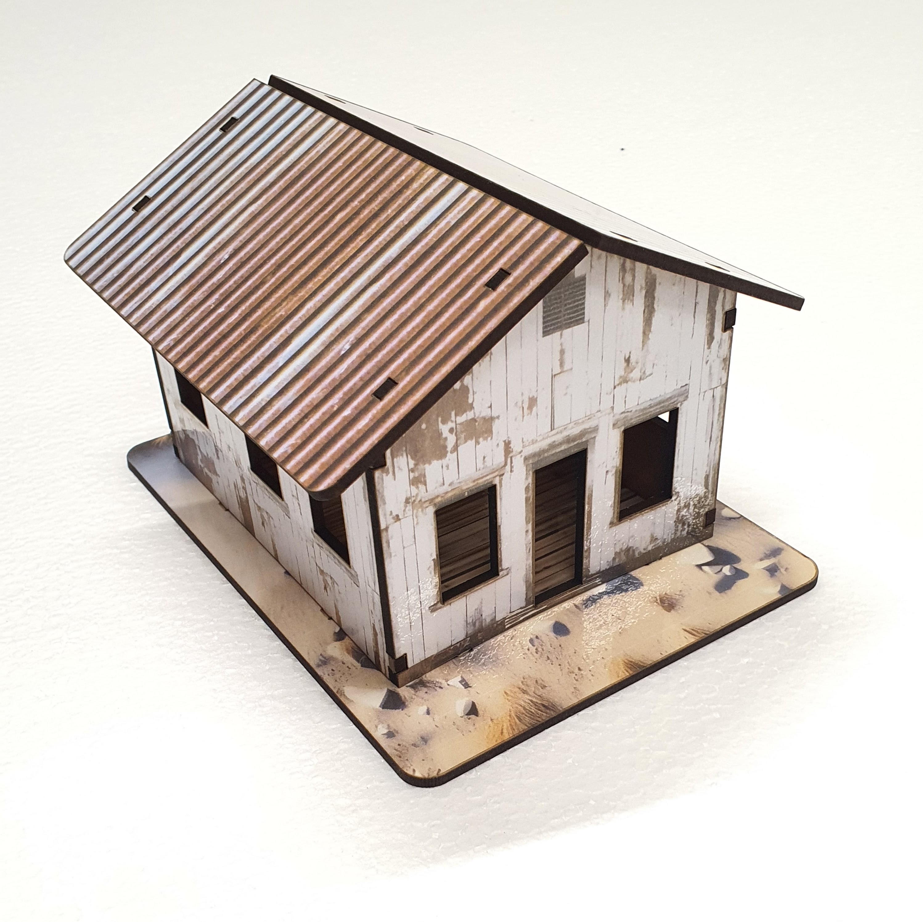 A good friend has a coffee & s/h books van and I'm was trying replicate her H van using a laser cut model employing a technique where the printed design is laminated to the wood then the shape is cut out and assembled. Like the model below of an old seaside cabin.