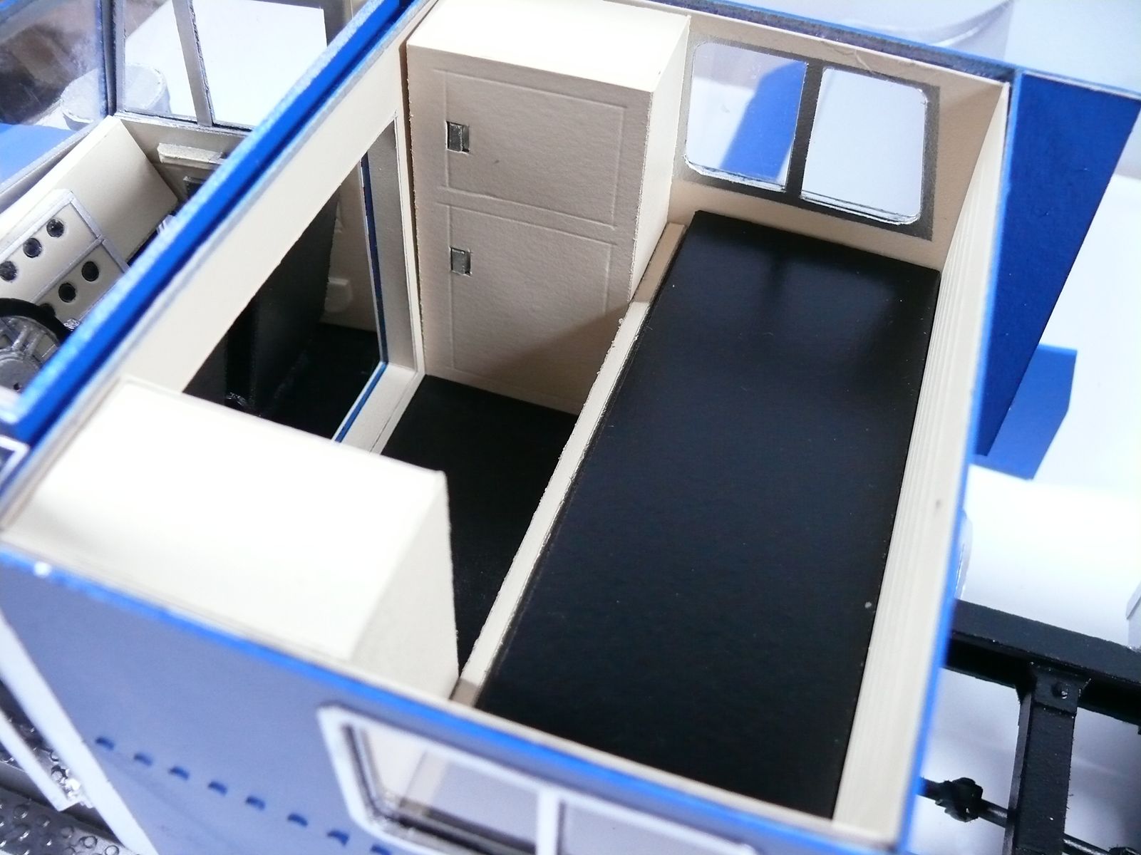 Après une pause de quelques mois, la construction a repris avec l'aménagement de l'intérieur qui n'est pas aussi détaillé que je l'aurais souhaité (par flemme et parce qu'une fois les espaces fermés on ne verra plus grand chose) :