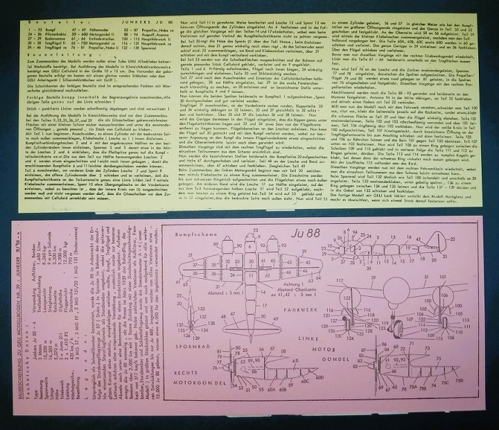 Environ 120 pièces sont réparties sur trois feuilles et demie typiques de GELI... les instructions de construction écrites sont complétées par des croquis de construction.