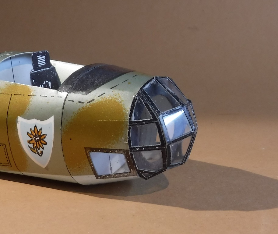 Dans la partie 9 du fuselage, les ouvertures des fenêtres doivent être collées derrière avec du papier d'aluminium...
