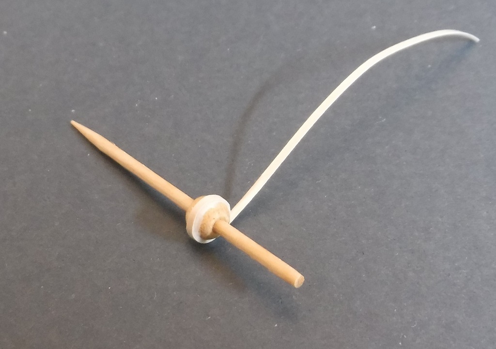 ... un cure-dent, une perle en bois de 6 mm et des bandes de papier...