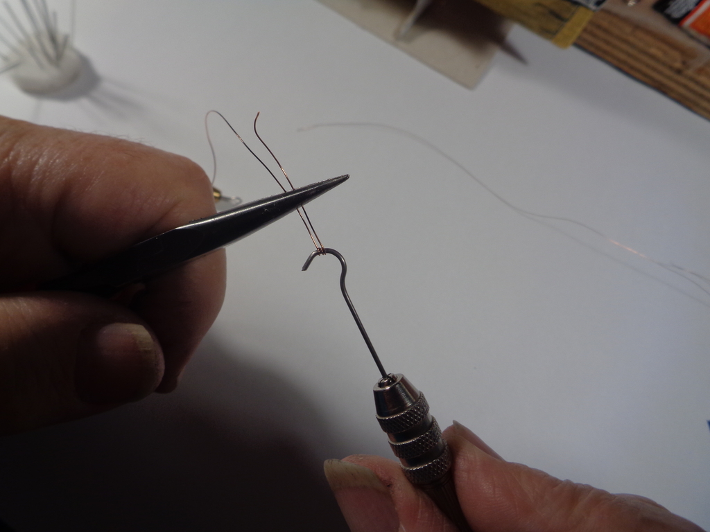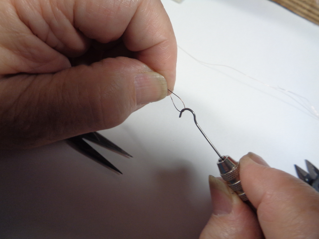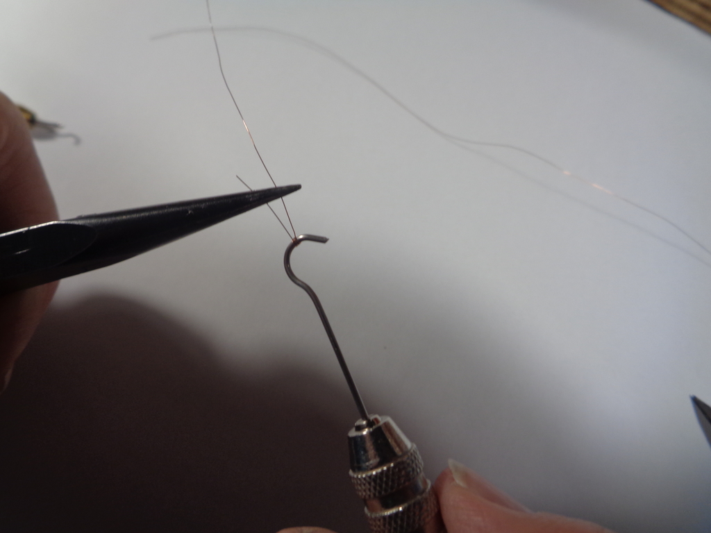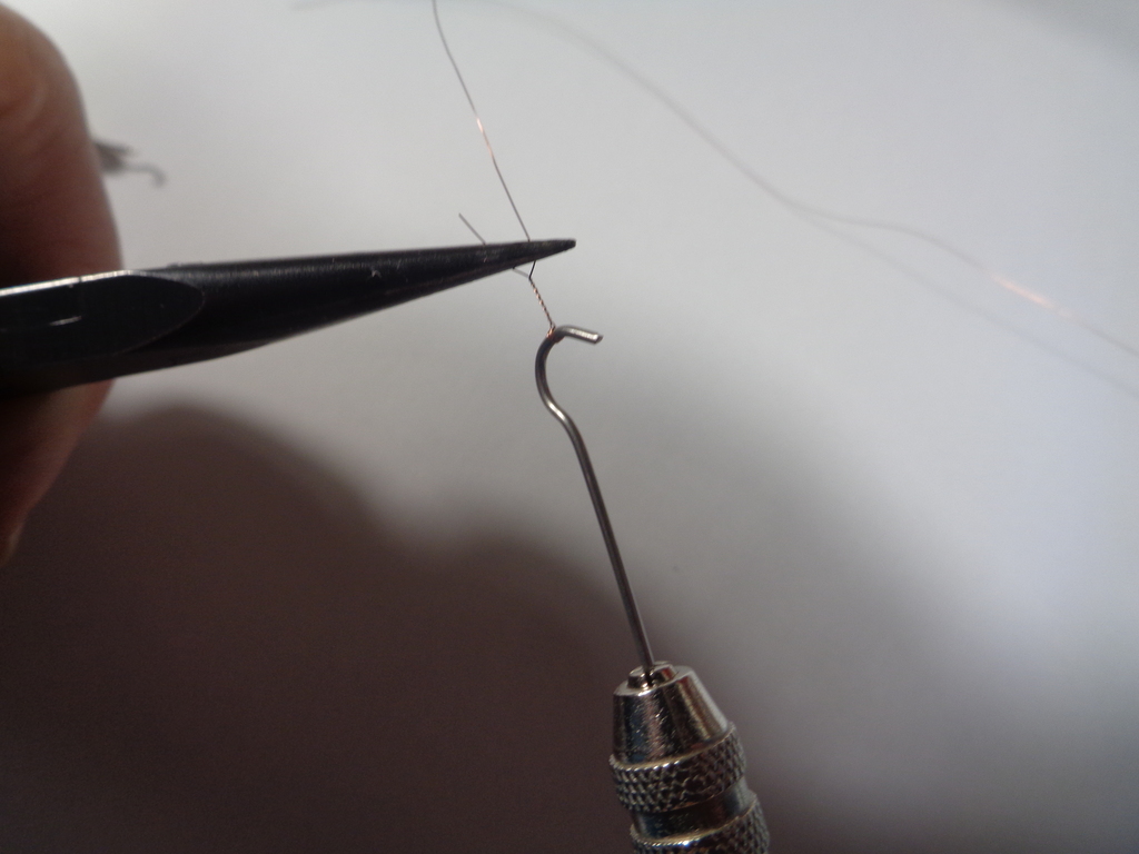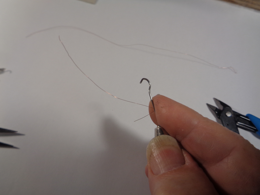 Voici la fabrication d'un anneau avec un petit crochet fait avec de la corde à piano de 0,6 mm et du fil de cuivre de 0,15 mm. Début