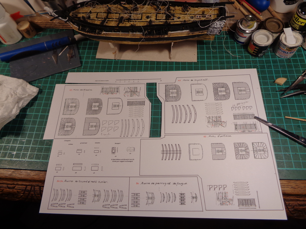 Je décrirai les hunes dans les communications suivantes, puis les mâts et vergues et les messages se feront plus rares parce que je les ferai à mesure de l'avancement des travaux. J'ai galéré longtemps sur des détails, ce qui m'a mis en retard. Mais au moins, j'ai appris beaucoup de choses!