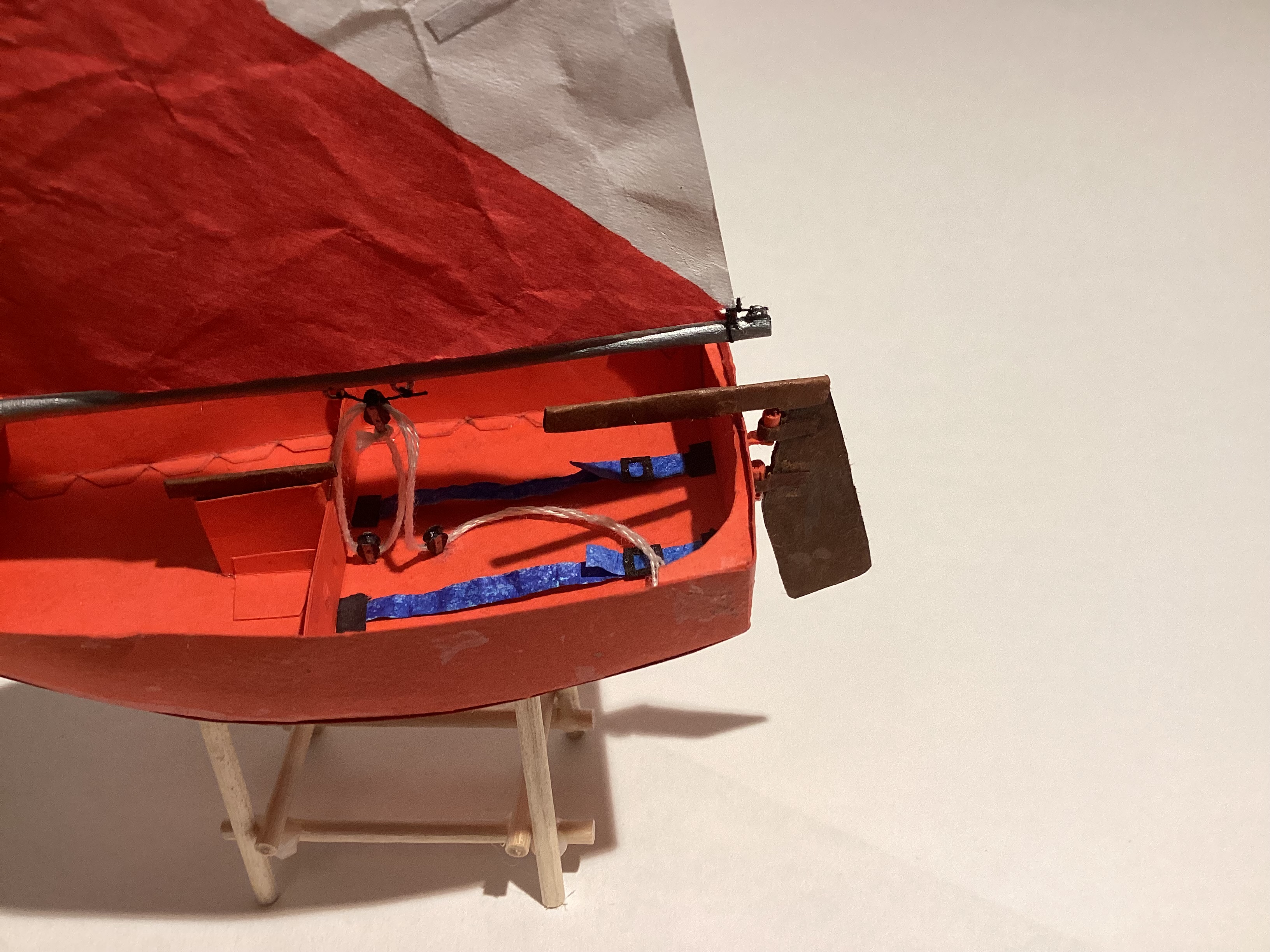 Le chariot est fait en carton peint, a partir d’un plan trouvé dans une notice de maquette en plastique Tamiya (ici, page 11)