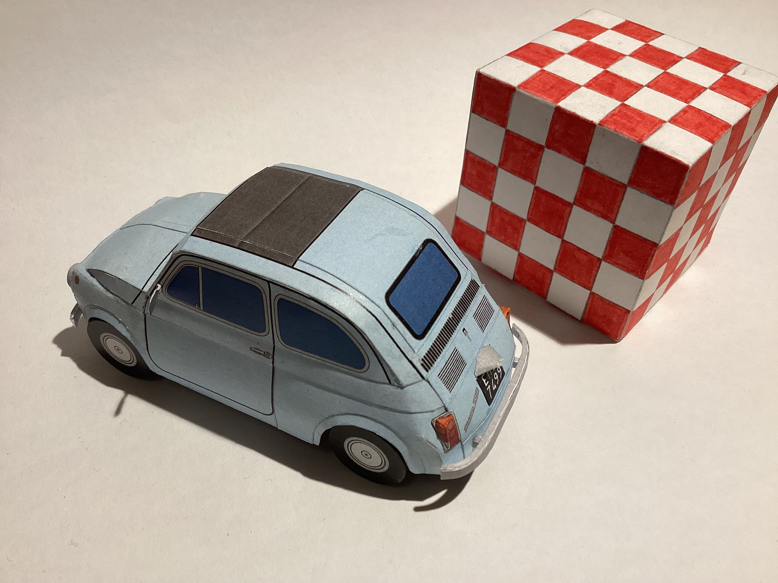 Le chariot est fait en carton peint, a partir d’un plan trouvé dans une notice de maquette en plastique Tamiya (ici, page 11)