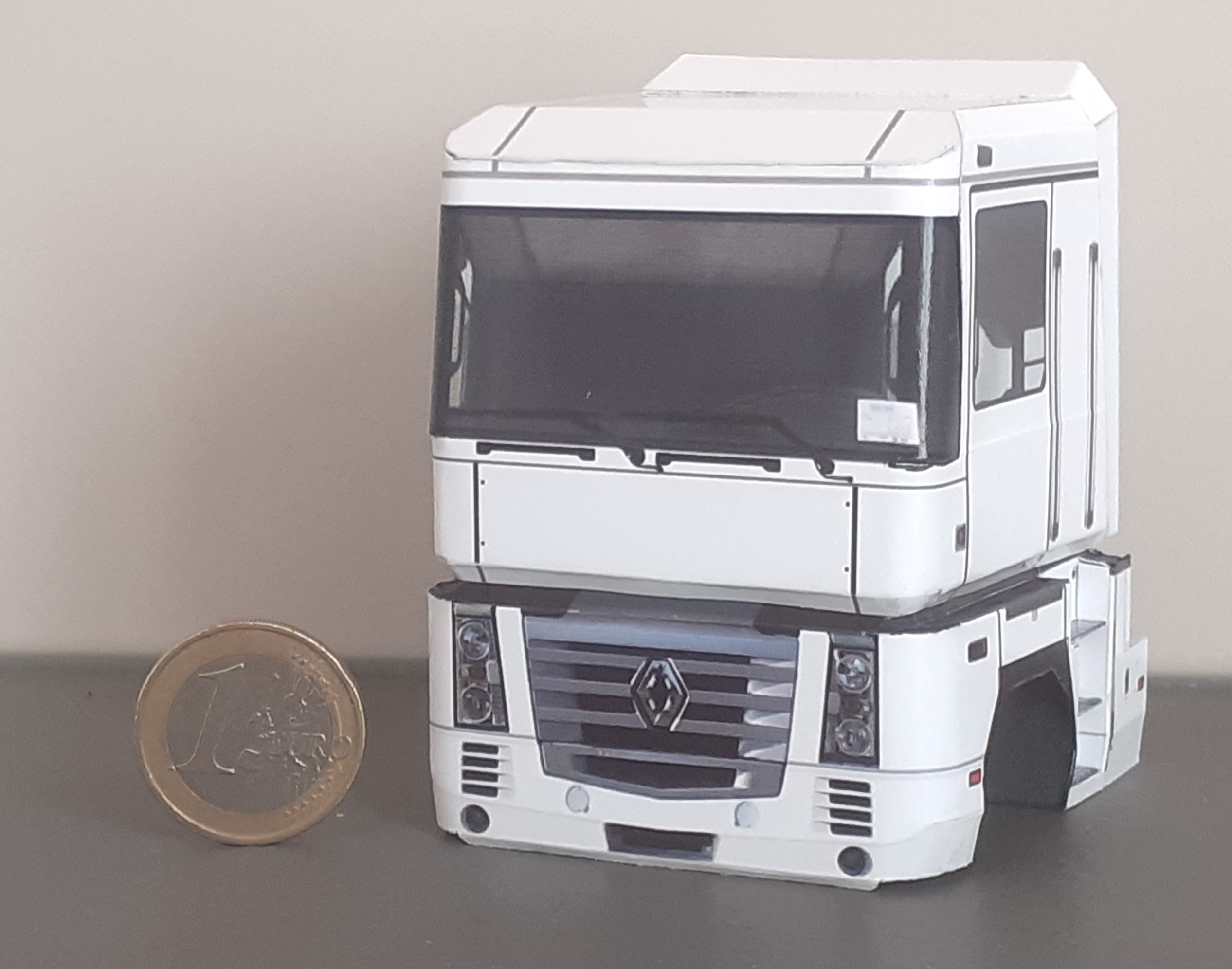 En image la ressemblance entre maquette papier et vrai camion de face de profil