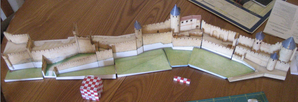 J'ai presque fini la maquette ; il ne me reste plus qu'à assembler de petites maisons et la barbacane, qui viendront combler les trous restant