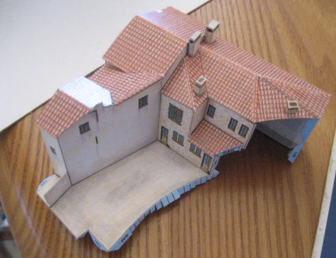 Cet ensemble ne s'achève complètement qu'une fois collé sur le socle de la maquette (il vient se poser contre une tour, et il vaut mieux poser, à ce moment-là seulement, le toit